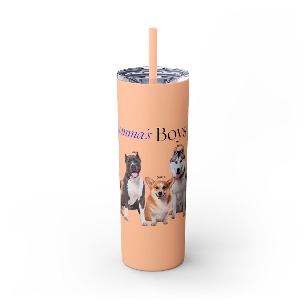DOG MOM Momma's Boys Dogs Photo Skinny Tumbler with Straw, 20oz